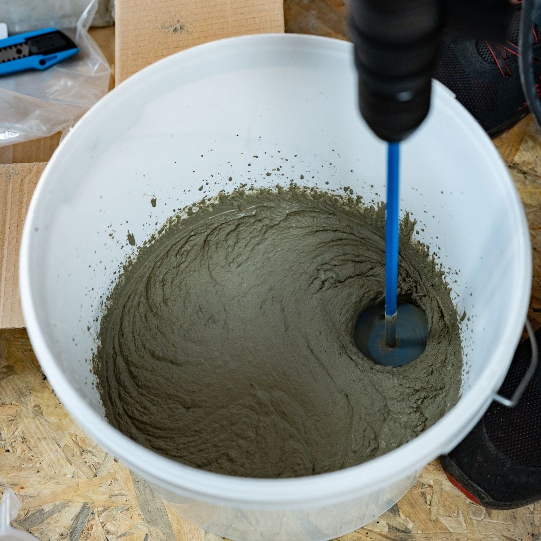 Wichtig: immer zuerst das Wasser einfüllen, anschließend den Mörtel zugeben und genau 2 Minuten mischen.