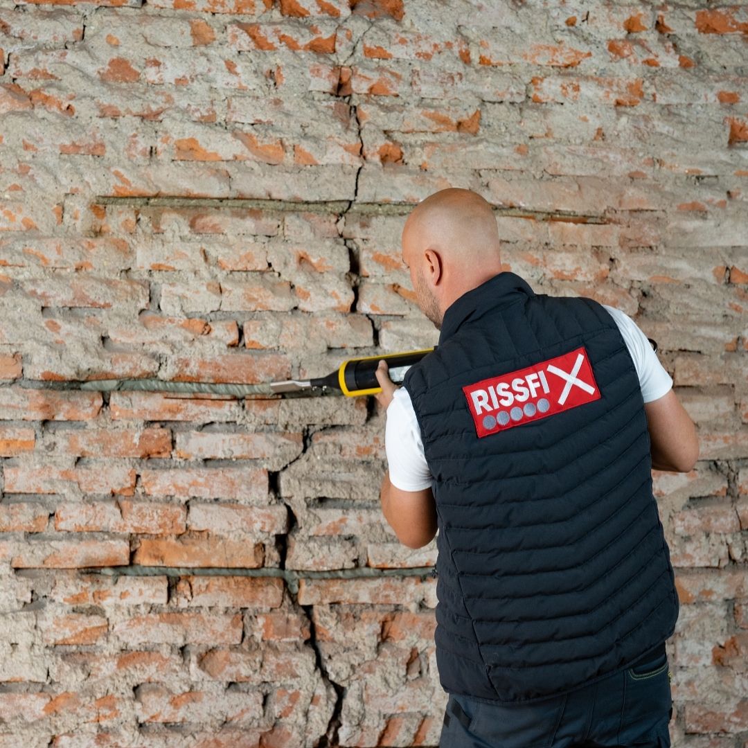 Rissfix eignet sich zur Reparatur aller Rissarten, sowohl in tragendem als auch in nicht tragendem Mauerwerk. Es kann in Ziegel-, Stein- und Betonwänden eingesetzt werden. Bei sehr breiten oder tiefen Rissen empfehlen wir, zur Beurteilung der Statik einen Fachbetrieb zu konsultieren.